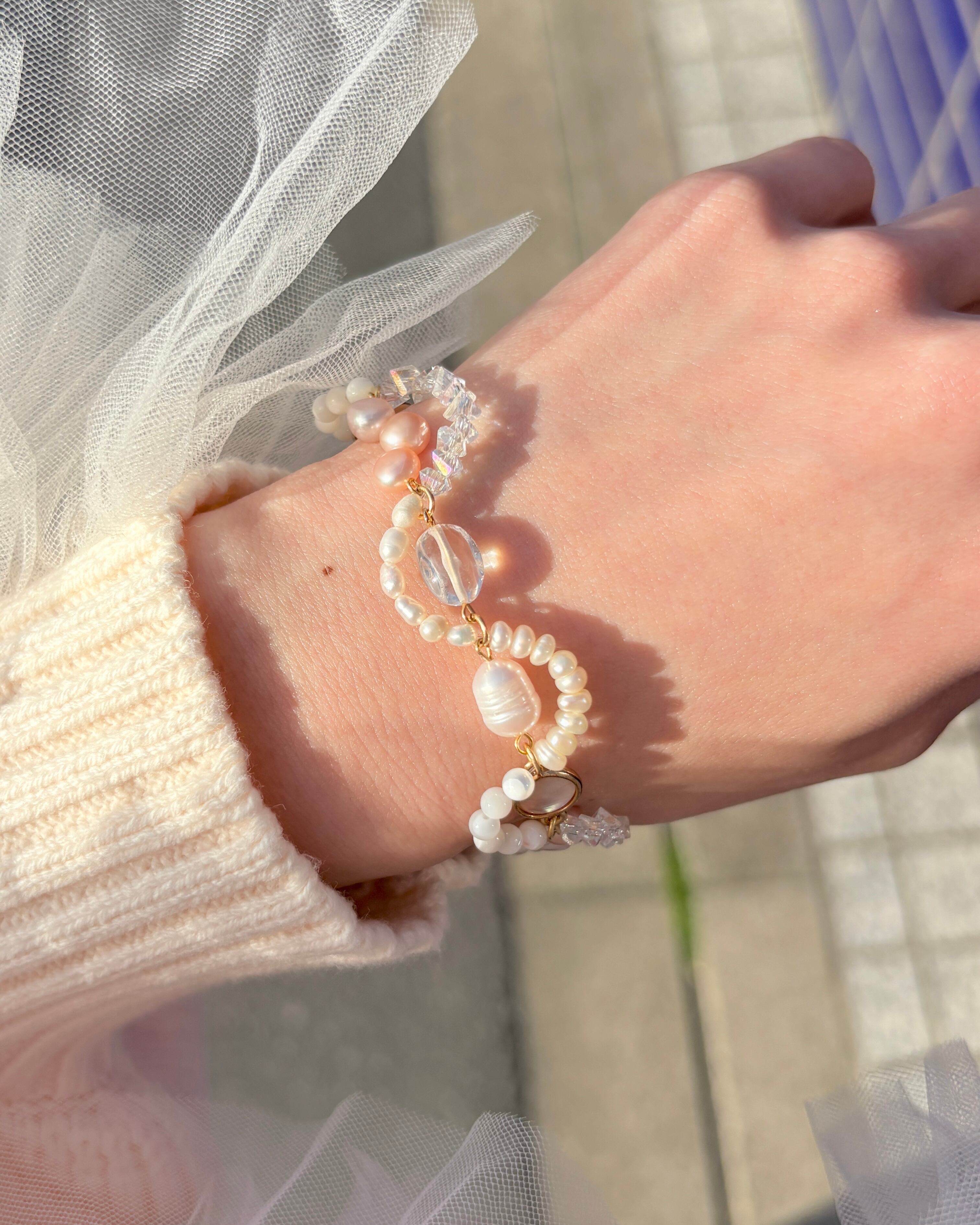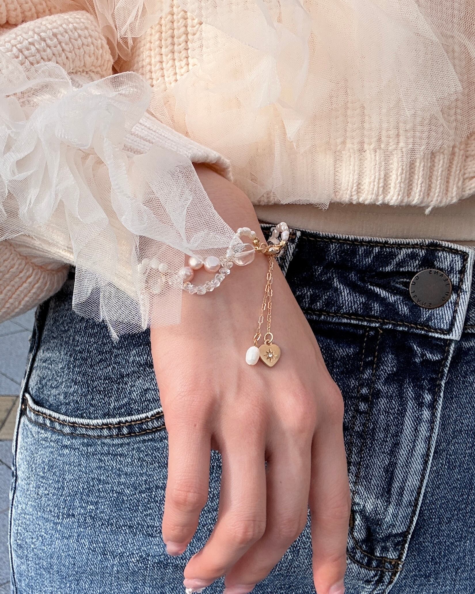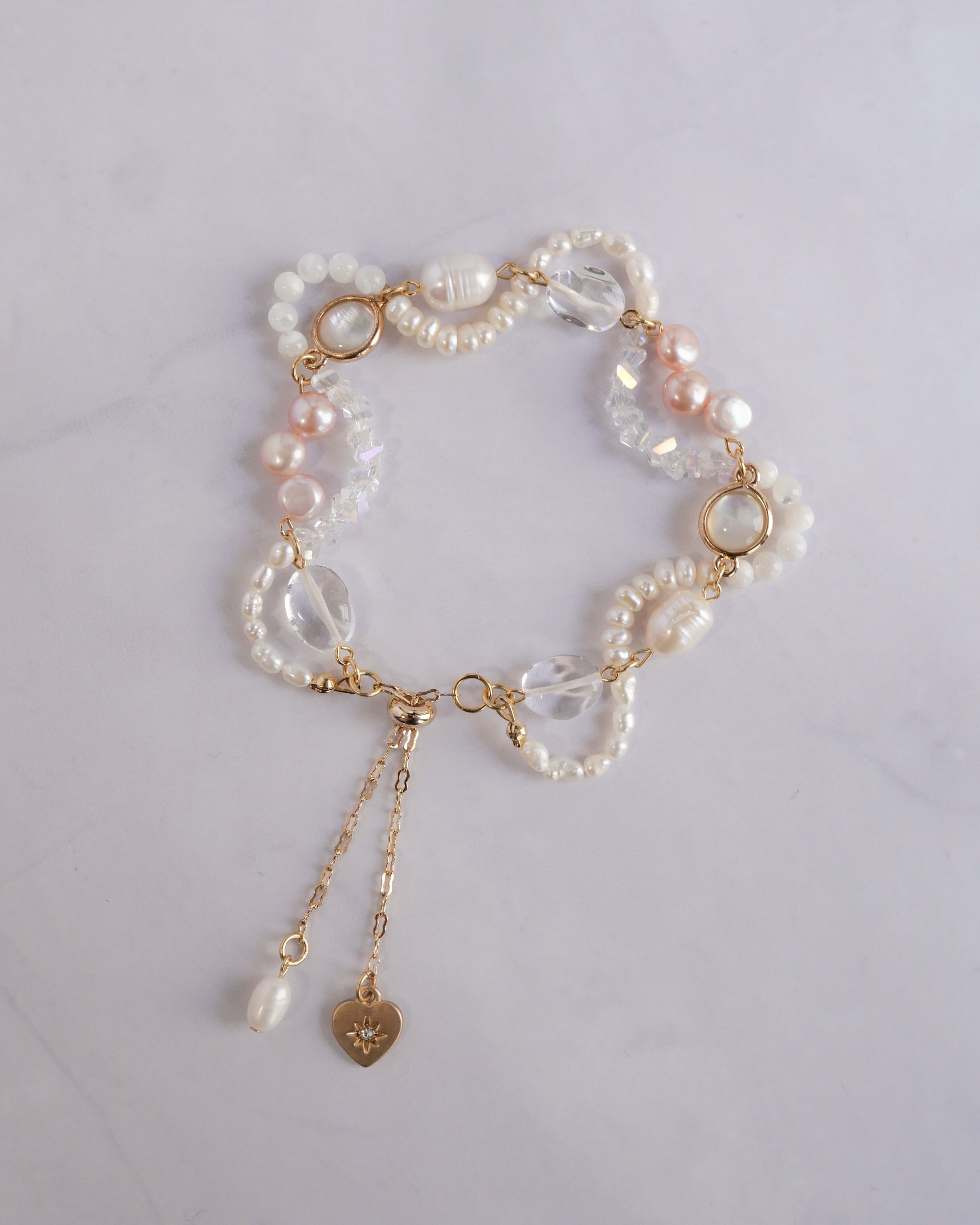 ほんのりとしたピンクを忍ばせたブレスレット。